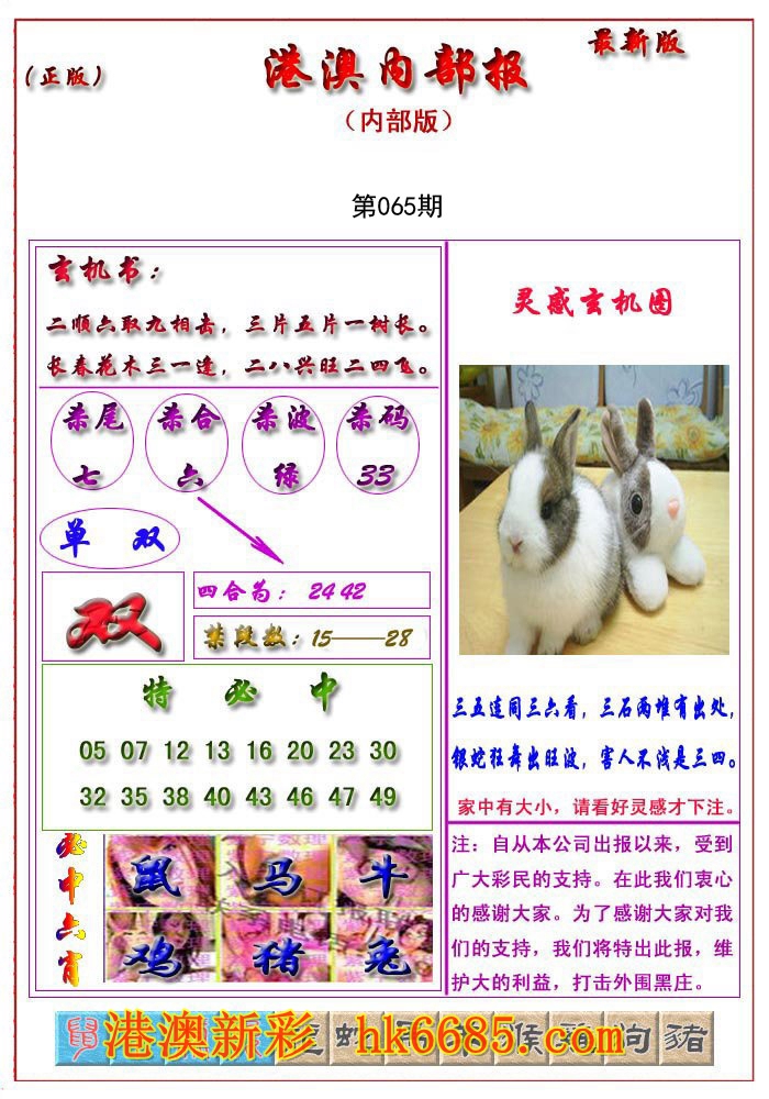| 065期:平特连肖【羊蛇兔鼠猴牛】开0个 准 |